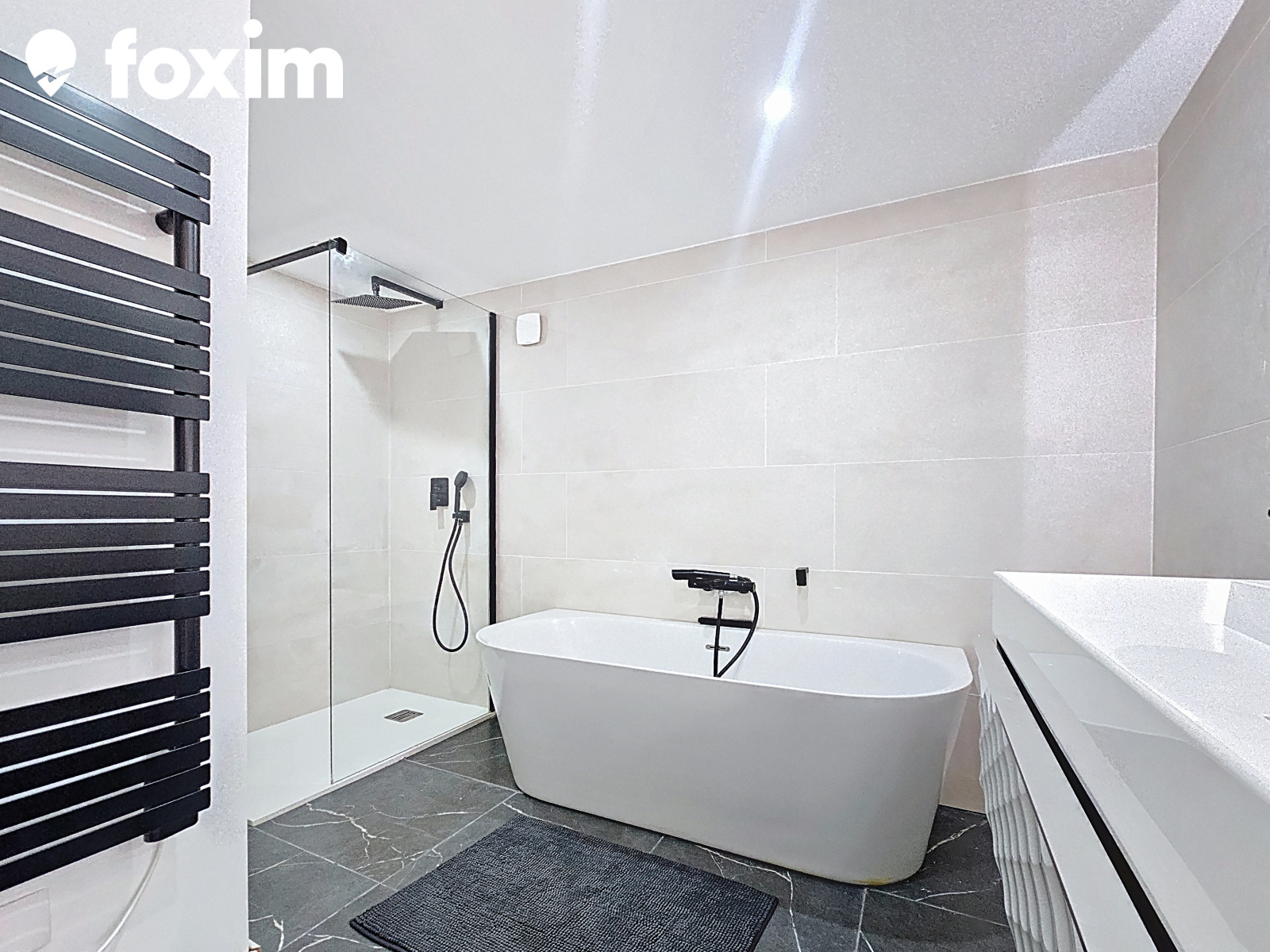 L’appartement dispose de deux belles chambres au premier niveau, tandis qu’un escalier élégant mène à l’étage supérieur où se trouve une grande chambre supplémentaire. La salle de bain est parfaitement équipée avec une baignoire et une douche à l’italienne, alliant confort et modernité.