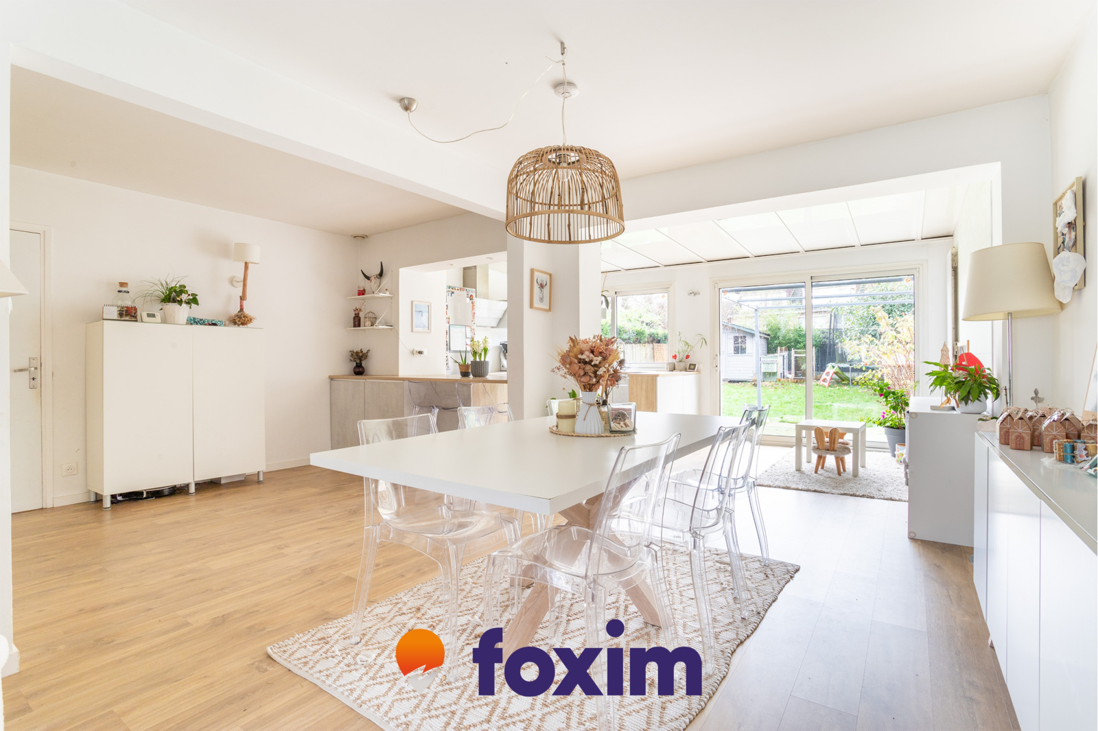 À l’extérieur, vous serez séduit par le jardin bien exposé et ses équipements : une terrasse de 20 m², un abris de jardin et un chalet. Le garage double en enfilade permet un accès direct au jardin. De plus, un parking extérieur devant la maison offre une solution de stationnement supplémentaire.
