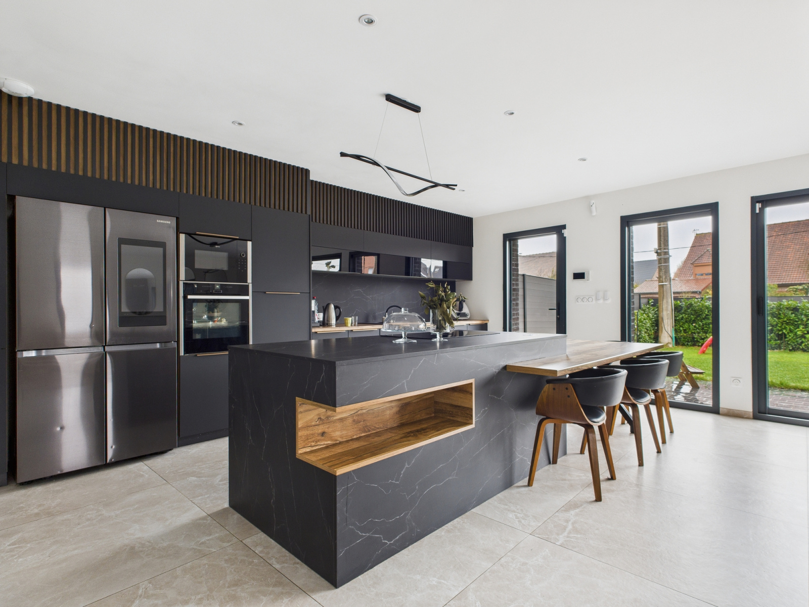 La cuisine, entièrement équipée en électroménager NEFF, marque allemande reconnue pour son positionnement premium, conjugue esthétique et performance. Chaque équipement a été choisi pour offrir confort d’usage et qualité durable.